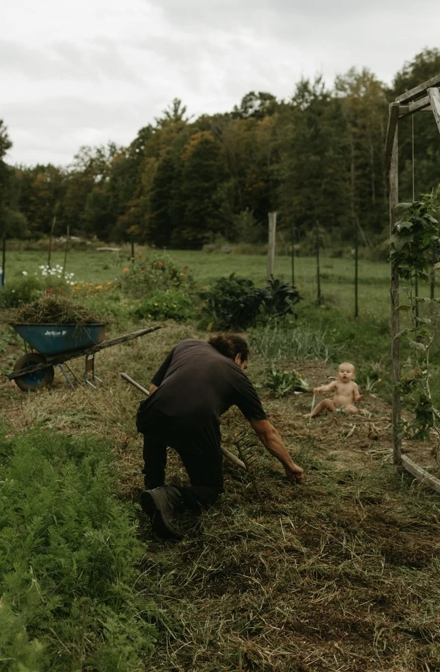 At Wood & Water Market Garden he grows vegetables without any chemicals or GMO’s, and as little plastic and machinery as possible. Using a combination of no-till and regenerative methods, and fertilizers made from wild harvested local plants. .